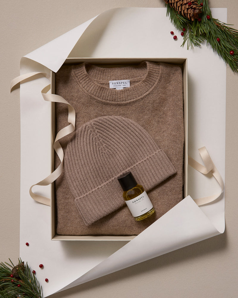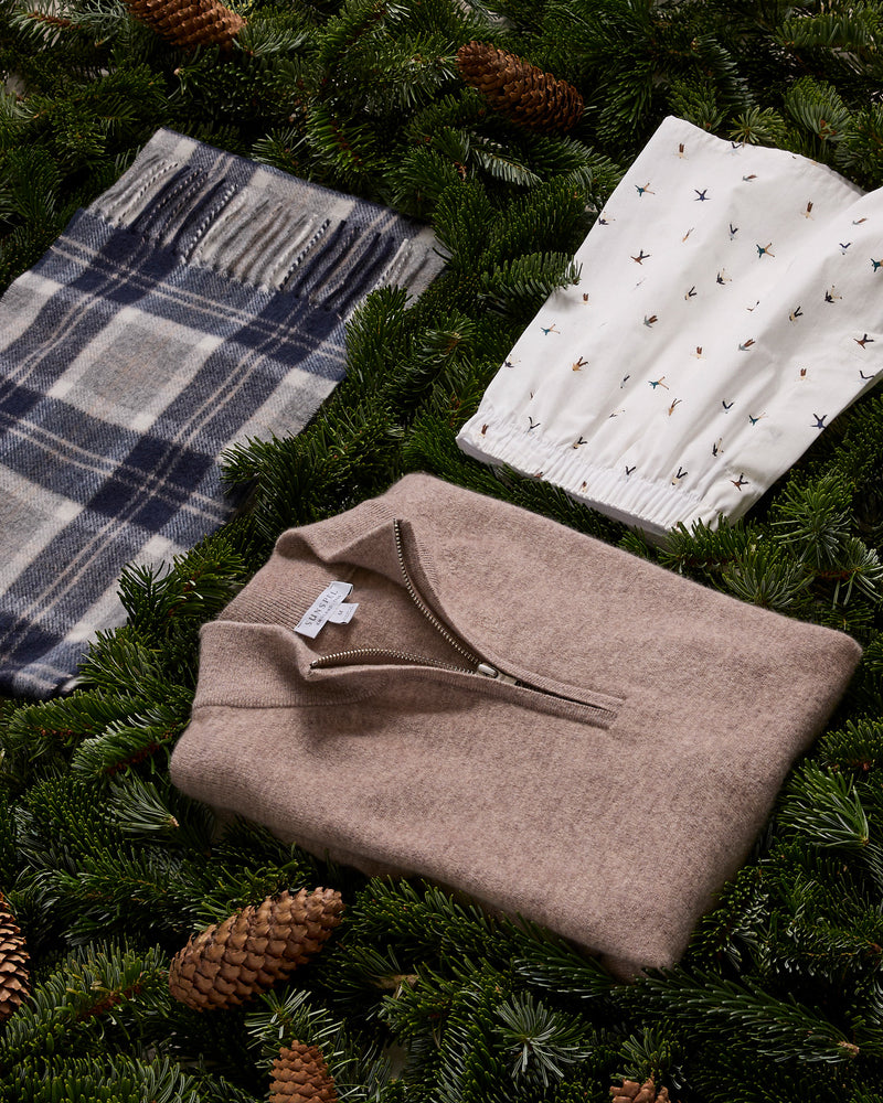 やわらかなニットウェア、上質なコットンアイテム、そしてエレガントなアクセサリー。世界最高品質の素材を丁寧に仕立てた、贈りものの季節にふさわしいコレクションです。