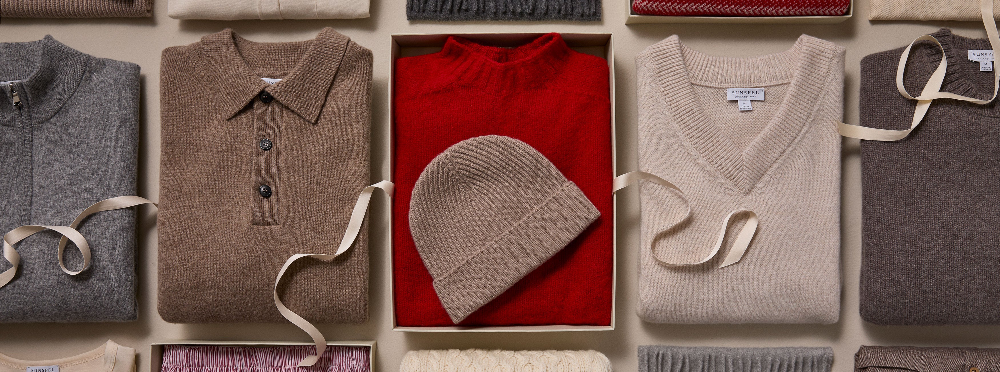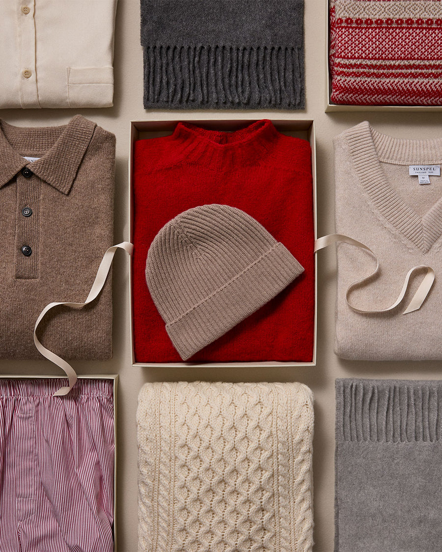 やわらかなニットウェア、上質なコットンアイテム、そしてエレガントなアクセサリー。世界最高品質の素材を丁寧に仕立てた、贈りものの季節にふさわしいコレクションです。