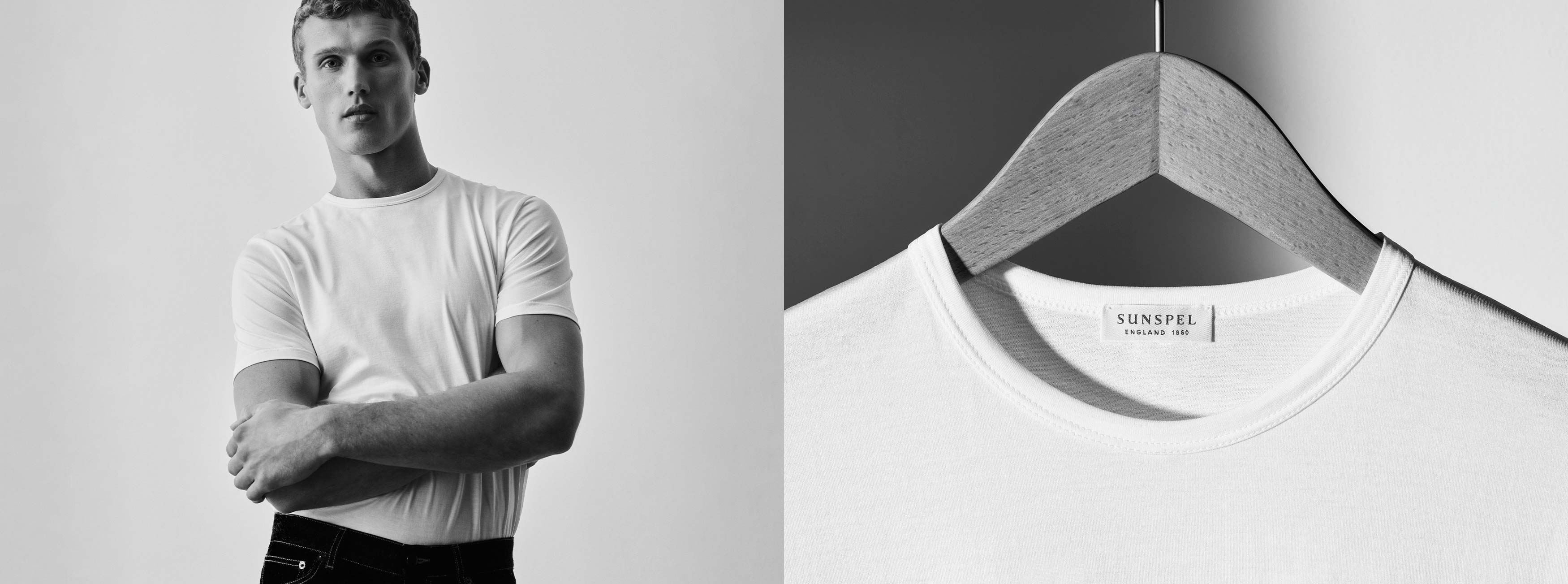 サンスペルは世界に先駆けて高品質な素材を使って作られたTシャツのひとつを作りました。以来、100年以上かけて完璧を追求し改良を重ね、現在も熟練した職人により英国ロングイートンの自社工場で丁寧に手作りされています。綿糸を二本撚り合わせ、サンスペルによって開発された「Q82」素材は、カリフォルニアの単一農園で栽培された高品質のエクストラロングステープル(超長繊維)スーピマコットン繊維のみが使われます。これが「完璧なTシャツ」であると信じています。