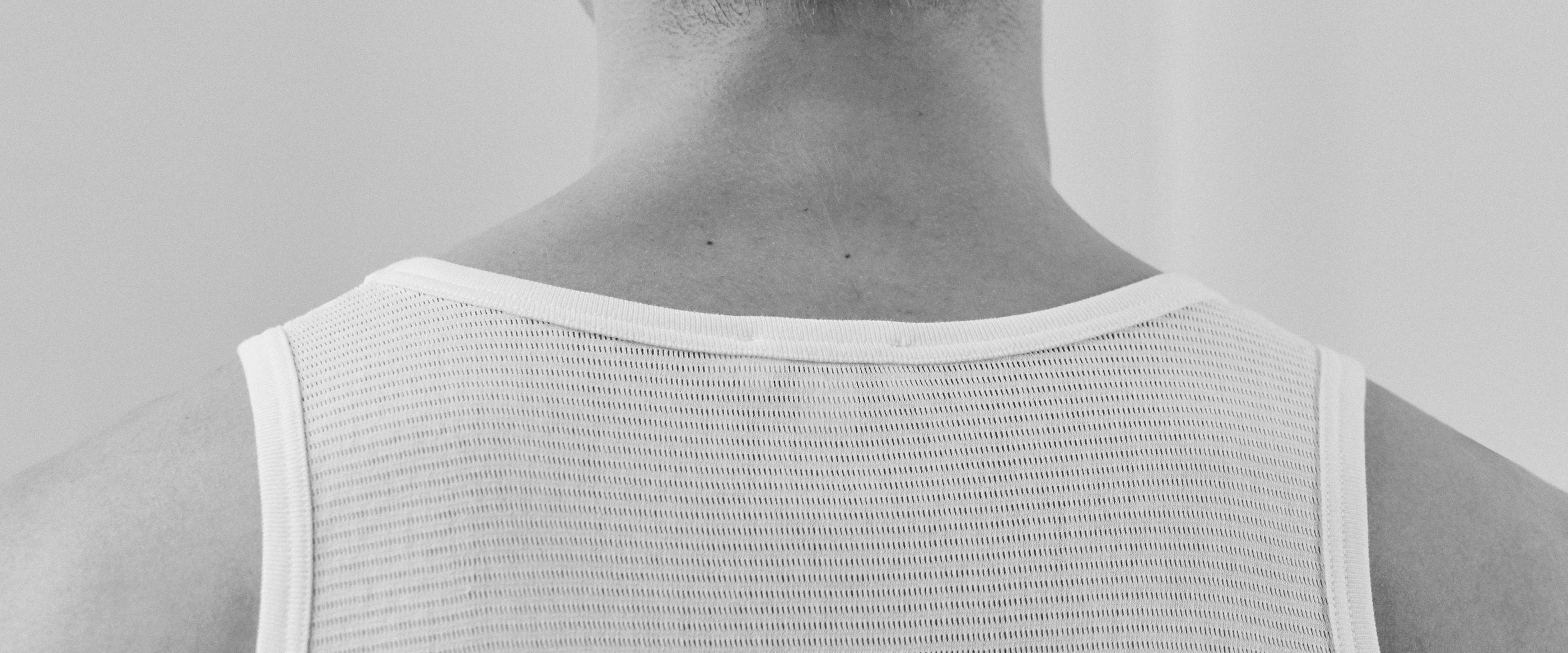 1914年、かつてレース産業の中心地であったノッティンガムの伝統的なレース編機をカスタマイズして開発された、コットン製のオープン(つまり「セルラー」)ニット素材「Q14」。メッシュ素材は独特な方法によって糸が固定されているため、非常に丈夫で耐久性があります。この生地で展開しているアンダーウェアは軽くて通気がよく、快適な着心地を提供します。