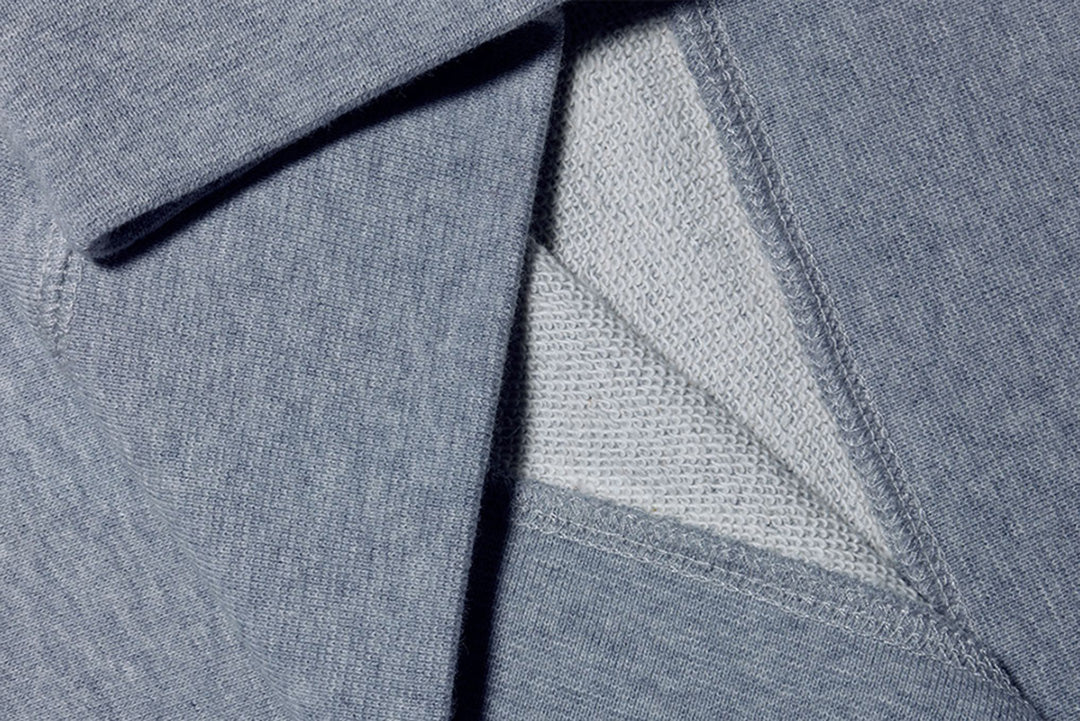 素材には、かさばらずに暖かさと快適さを備えた、上質なコットンのループバック生地を使用。内側のループ状の編み地が空気を含んで保温性を高めつつ、通気性も保ちます。ほどよい重みがあり、肌に触れたときはなめらかです。