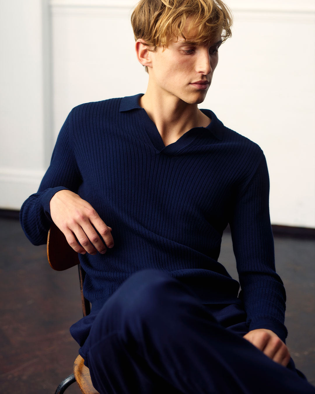 ロングスリーブ ファインリブ シルクコットン ポロシャツ