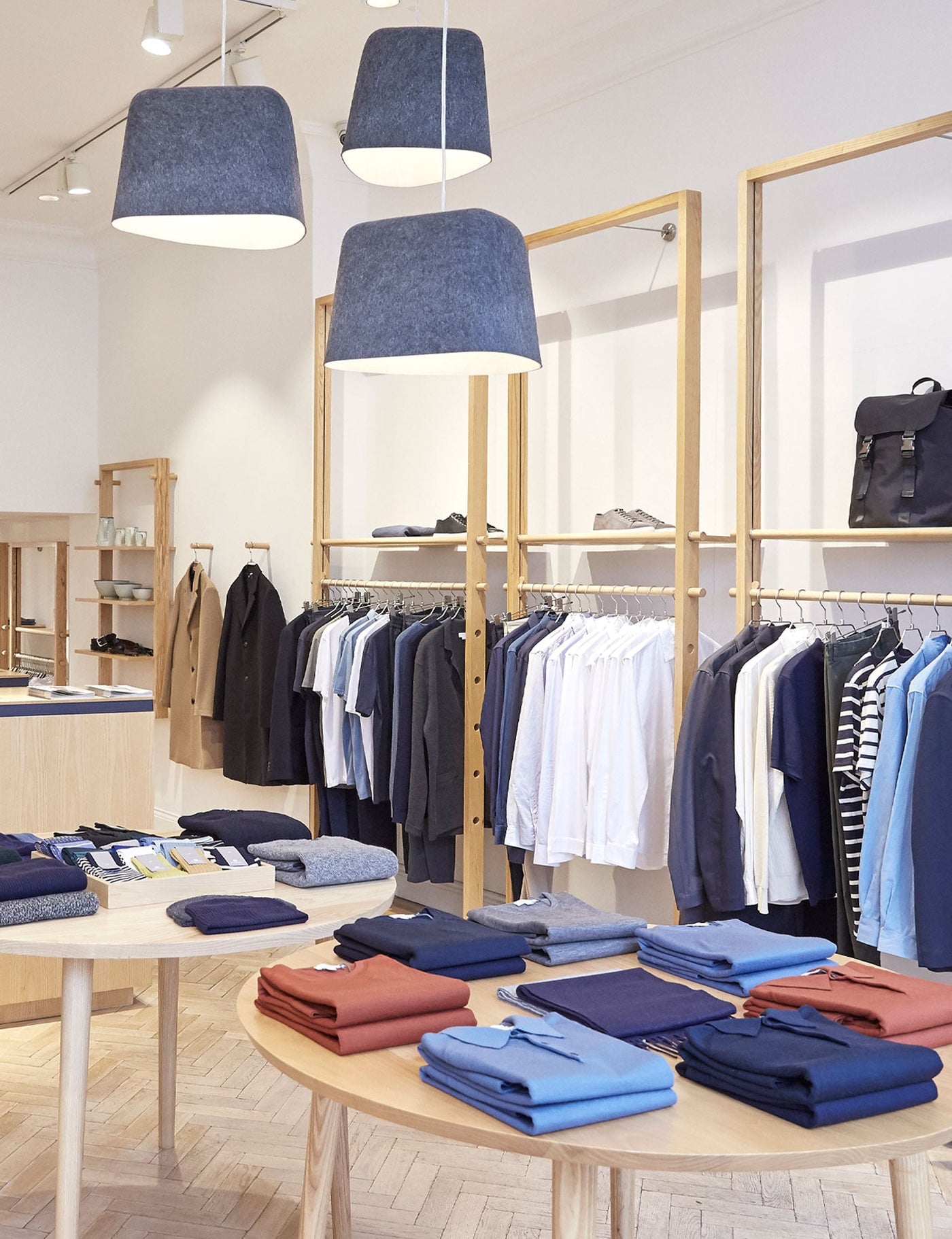ノッティング・ヒル店はサンスペル最大の店舗面積を誇ります。同店はメンズ、ウィメンズの全シリーズを在庫に持ち、興味深いコラボレーションや丁寧に選ばれたゲストブランドの商品を交代で置いています。