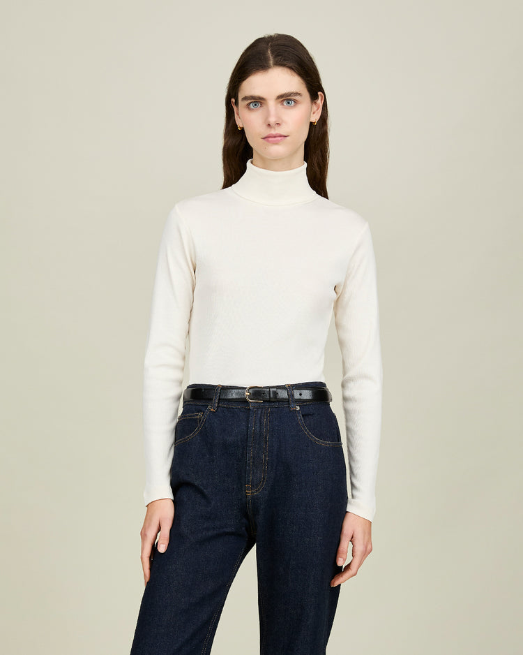 メリノはイタリア北部ピエモンテの紡績工場から調達しています。この工場は1817年創業で、動物福祉に配慮したノンミュールジングの羊毛のみを扱っています。糸はポルトガルで編み立てられ、使われているのはもともとイギリス・ラフバラで作られた伝統的なベントレーフレーム編機。コンパクトで整った目面を生み出し、上品さと耐久性を兼ね備えたニットに仕上がります。