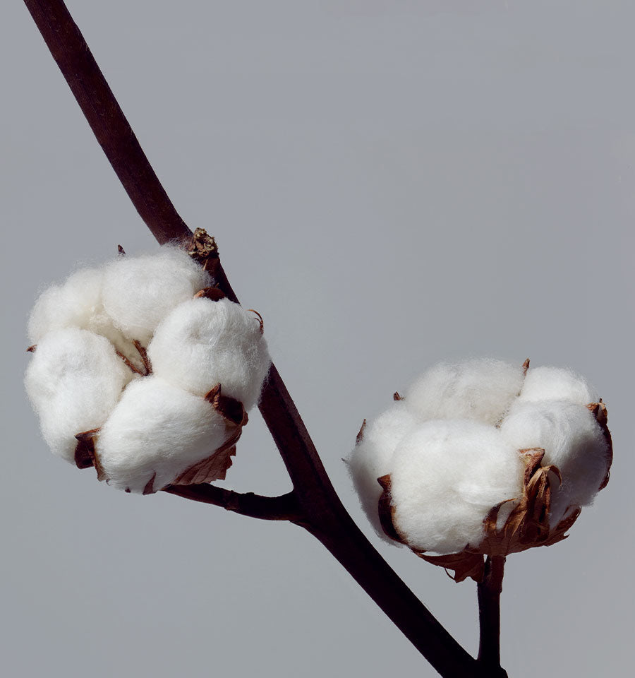 「Q82」素材にはカリフォルニアの単一農園で栽培された高品質のエクストラロングステープル(超長繊維)スーピマコットンのみが使われます。不純物を取り除くために梳いてから束ね、強度と滑らかさが出るよう撚りをかけます。この工程によって着用や洗濯でよれない綿糸が出来上がります。さらに、この綿糸を二本撚り合わせ、ガス焼きすることで残った不純物や毛羽を取り除きます。「Q82」素材は軽量かつ耐久性に優れ、滑らかな肌触りを特徴とし、サンスペルによって開発され何世代にわたって改良を重ねてきた特別な素材です。